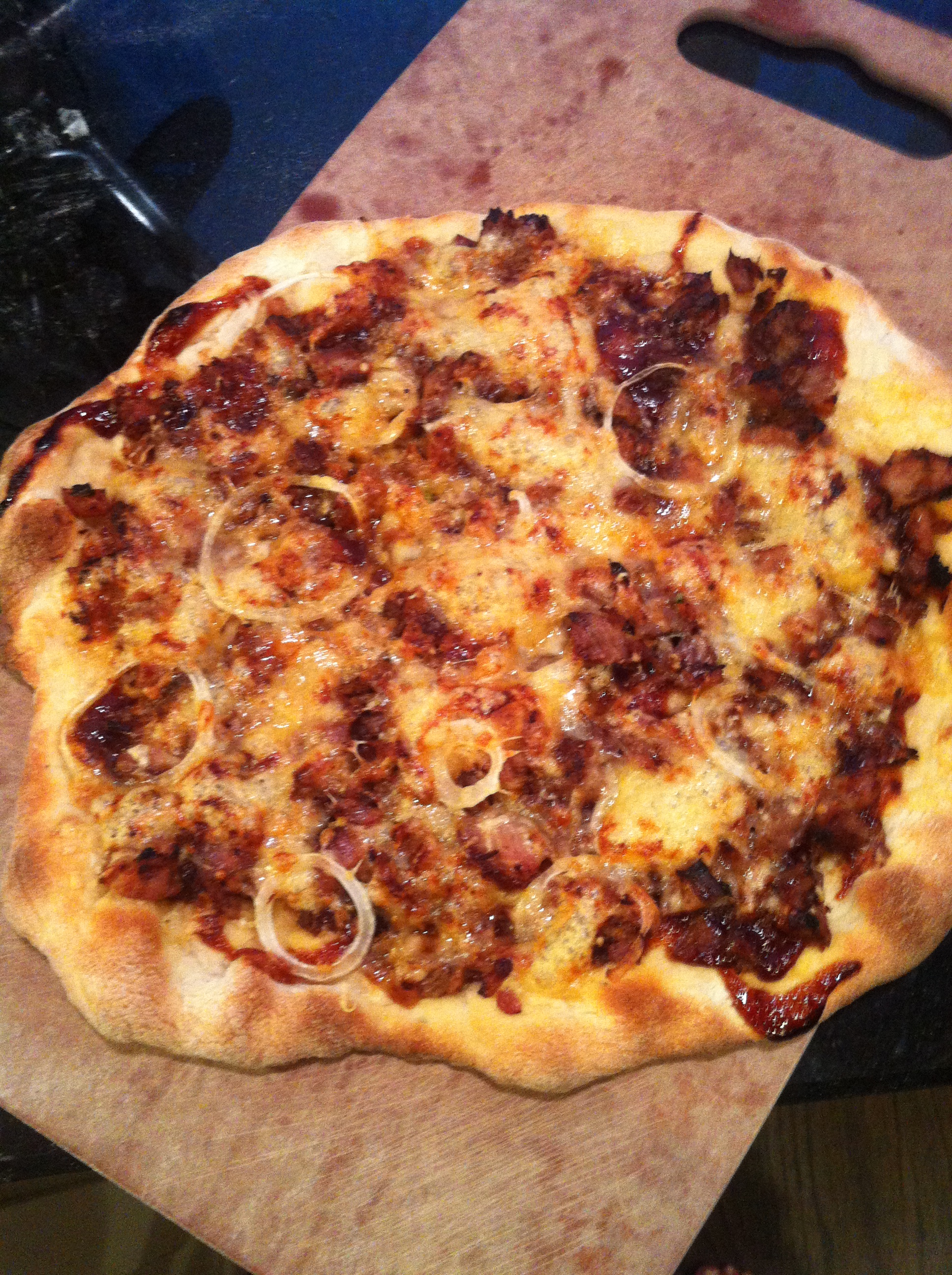 I spent the vast majority of my “free time” this weekend in the kitchen. We made Waffle House waffles and bacon for yesterday’s brunch, burrata di buffalo for a dinner appetizer and two pizzas–barbecue pork with gouda and pancetta with mozzarella. Today I made a sweet potato hash with fried eggs for brunch, pico de gallo and corn salsa for a dinner appetizer and pork lime tacos for dinner. I could spend the entire day in the kitchen, and as long as Nicholas is in my space, I’m perfectly content. I’ve become a total foodie and can’t help but wonder if I could make a career out of my kitchen.