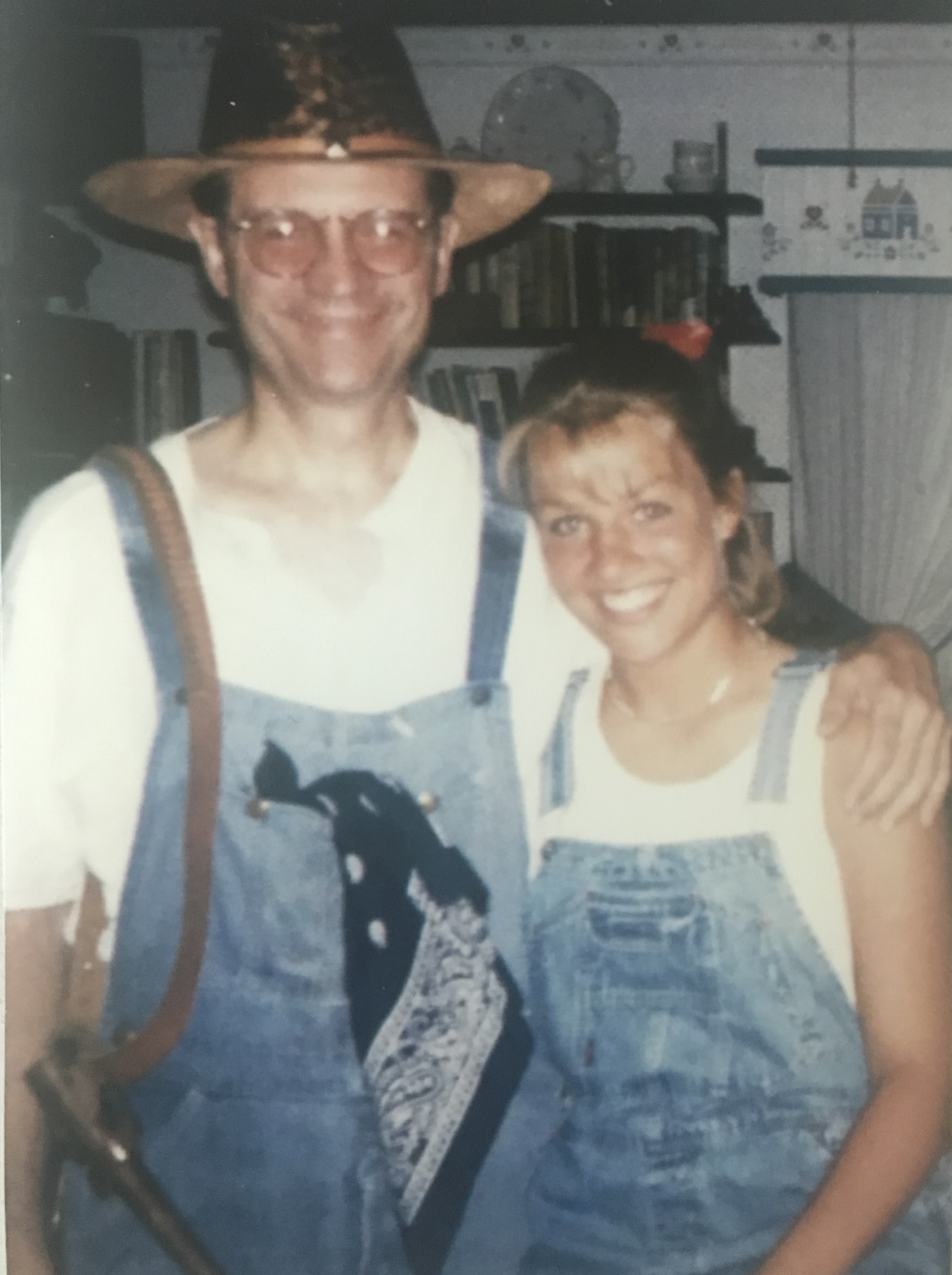 He has always called me “Jewler,” loved me through some tough choices that were hard for him, and while I’m super close to my mom, I’ll always be a “Daddy’s Girl.” There’s a million more stories and things I love about my dad, but as the ugly tears are starting, I’ll wrap up with my favorite picture of us–this was in preparation to meet my sister’s fiance and we thought it’d be funny to wear our overalls with a gun/holster. Lol. I love his “chessy cat grin” (as he calls it) in this photo.