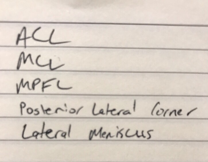 I nailed the cement curb of the boccie court, flew off, and landed on my right knee. I had quite an audience across the street, so initially, it was only my pride that really smarted until I tried to stand. I couldn’t put any weight down, and my knee had shifted a couple of inches to my right. The pain shot through my leg, and I remember thinking that I must have dislocated my knee, and I just needed to get it popped back into place.  (I mean, when I was a kid, I broke my nose a few times–dad would straighten it out with a good pop in place, and when the blood stopped, I carried on as normal.)