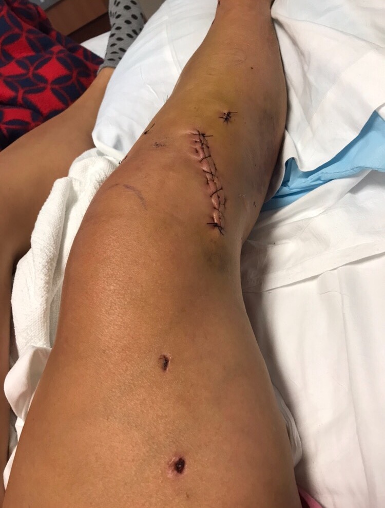 When Nicholas came around the corner, I was still a little dazed, thinking about that relocation procedure and trying not to cry. I wasn’t visibly bleeding, so he assumed I was okay and tried to help me up…and then tears came. I couldn’t walk. At all. It was an act of God to get me on the back of the moped to ride the block back to the house and from there it was holy terror to Urgent Care for X-Rays, then to the Emergency Room for more X-Rays.  5 torn ligaments and a shattered tibia later, I was admitted, but “holding” for a room in Grady’s Trauma Center, as Emory couldn’t or wouldn’t do my surgeries.